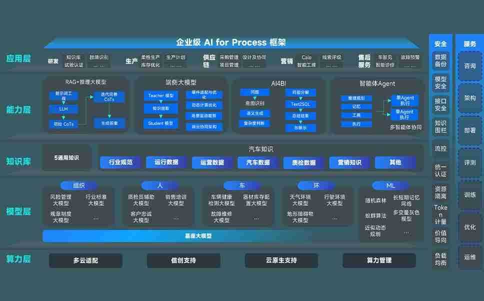 端到端的一站式AI工作空间深度融合了从企业战略规划到日常经营的全流程业务板块,,定向解决车企内部领域多、、、、部门多、、链条长、、、、场景碎片化等难题,,,支持车企快速构建以AI为核心的生产力写作体系,,,,实现任务执行与AI能力的无缝集成与交互